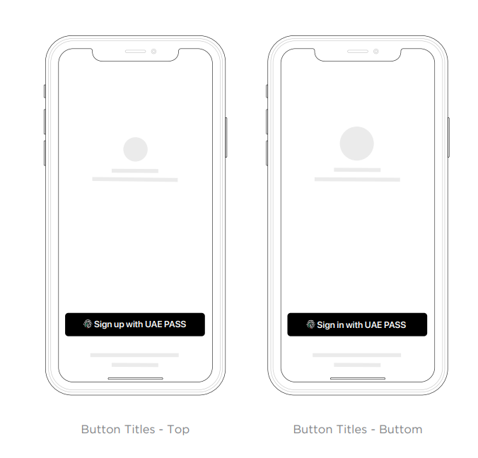 In mobile view, button titles must clearly indicate that the user is signing in to or signing up for your app using their UAE PASS — not creating a new UAE PASS account through your app.