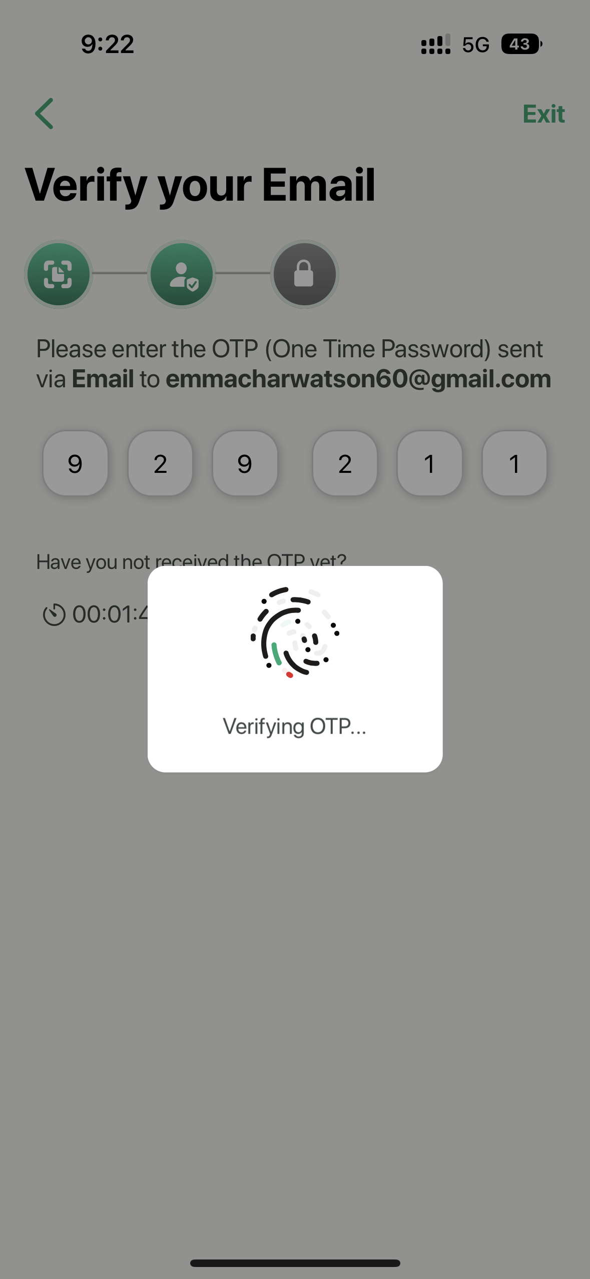 4.2 Upon success, you need to follow same steps for Email verification. Provide the OTP number sent to your entered email ID.
